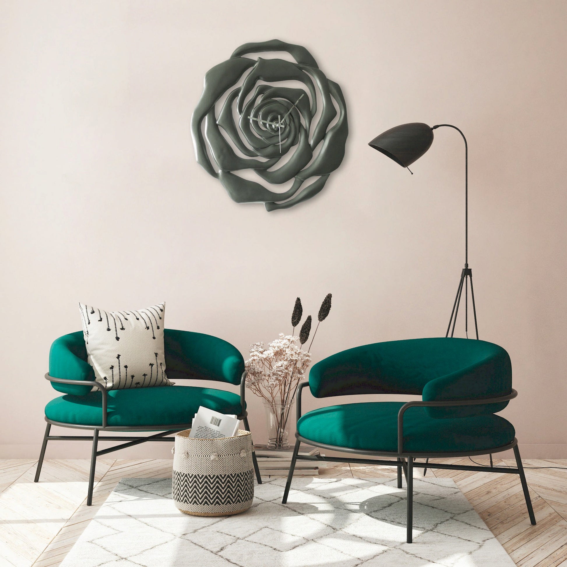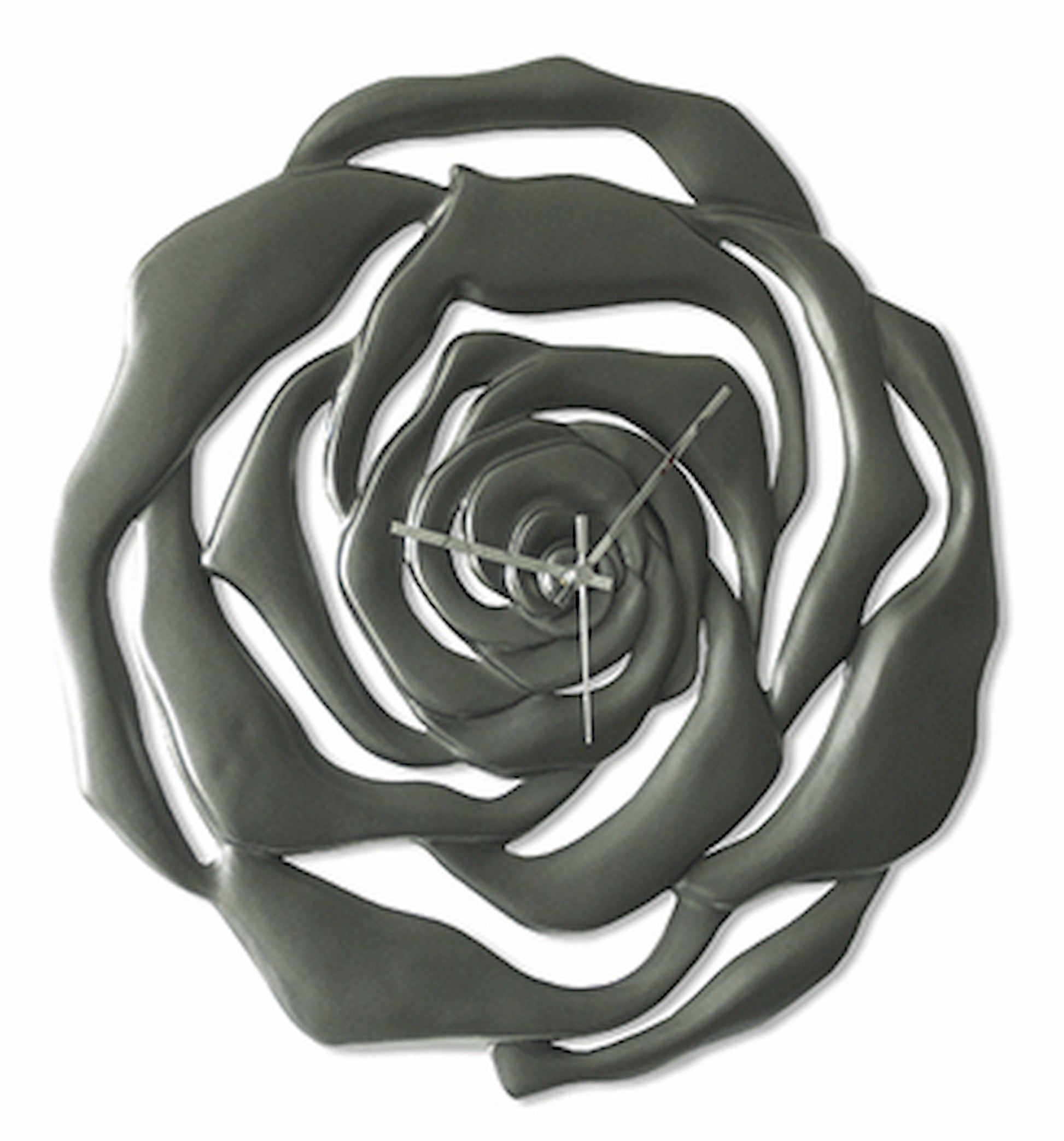 Orologio con struttura traforata in ceramica composita laccata grigio antracite. Lancette cromate.