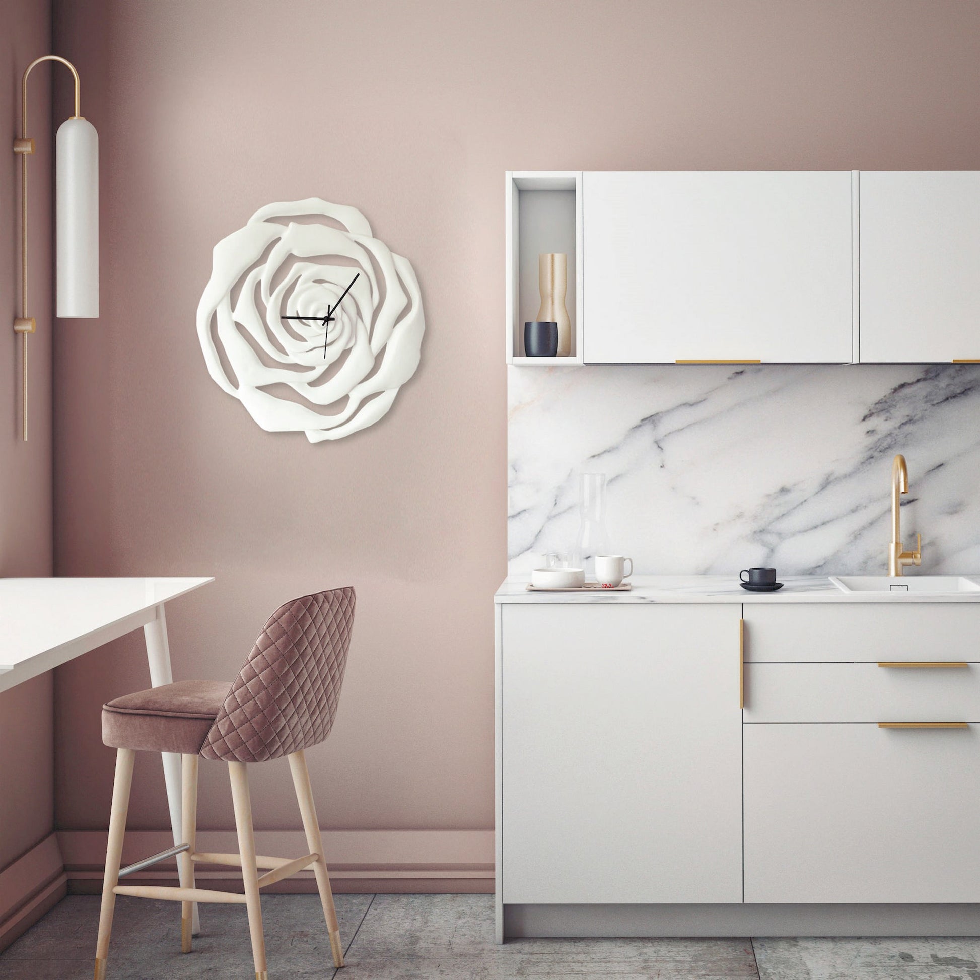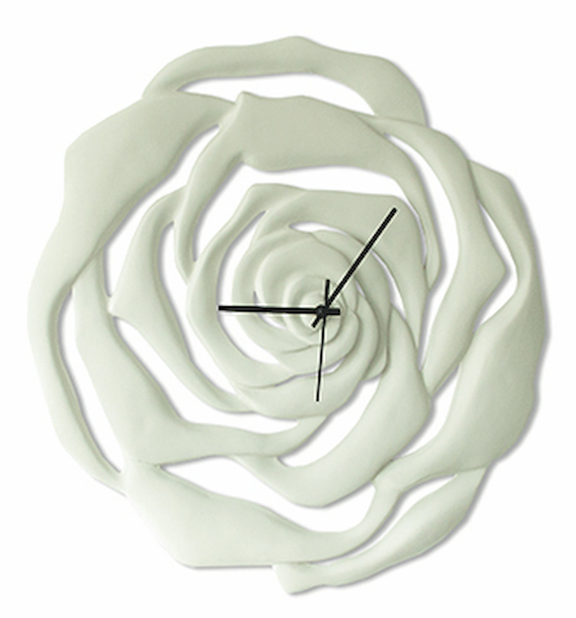 Orologio con struttura traforata in ceramica composita laccata bianco avorio. Lancette nere.