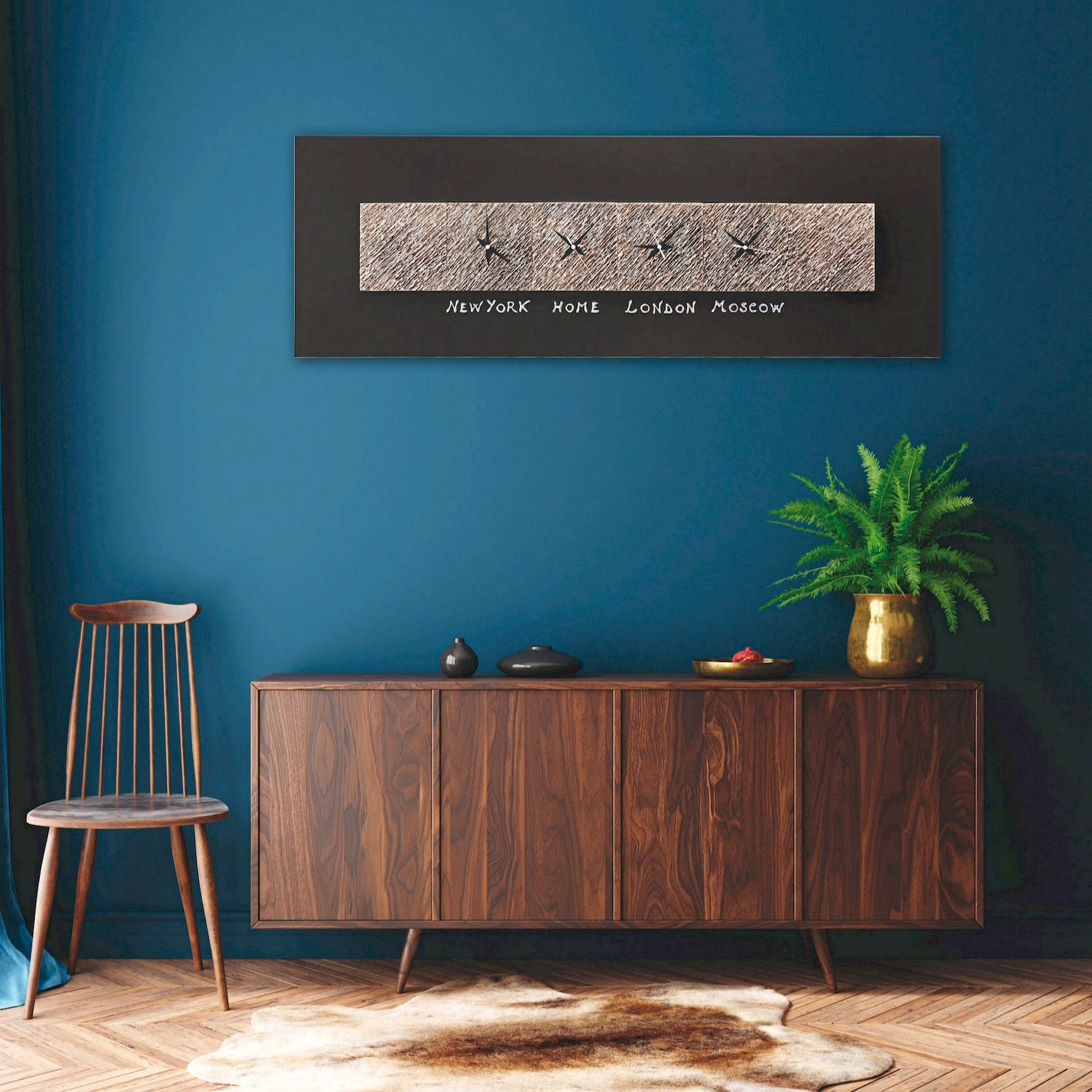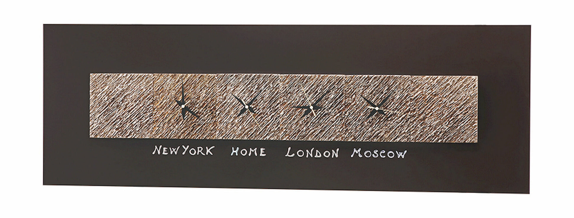 Telaio telato laccato color caffè con sei elementi in ceramica composita decorati a mano con resina e foglia argento. Scritte a rilievo.