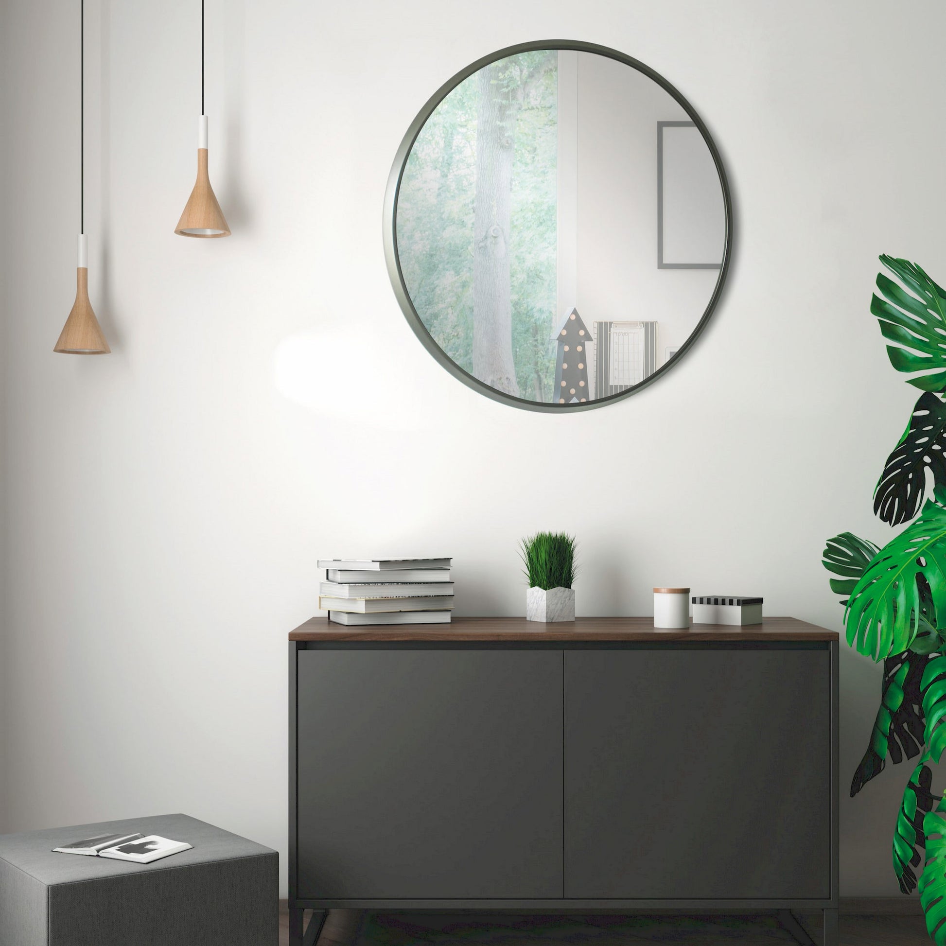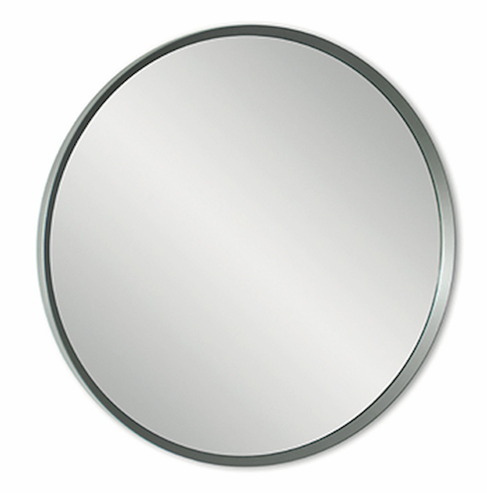 Specchiera con cornice inclinata verso l’interno. Finitura laccata grigio antracite.