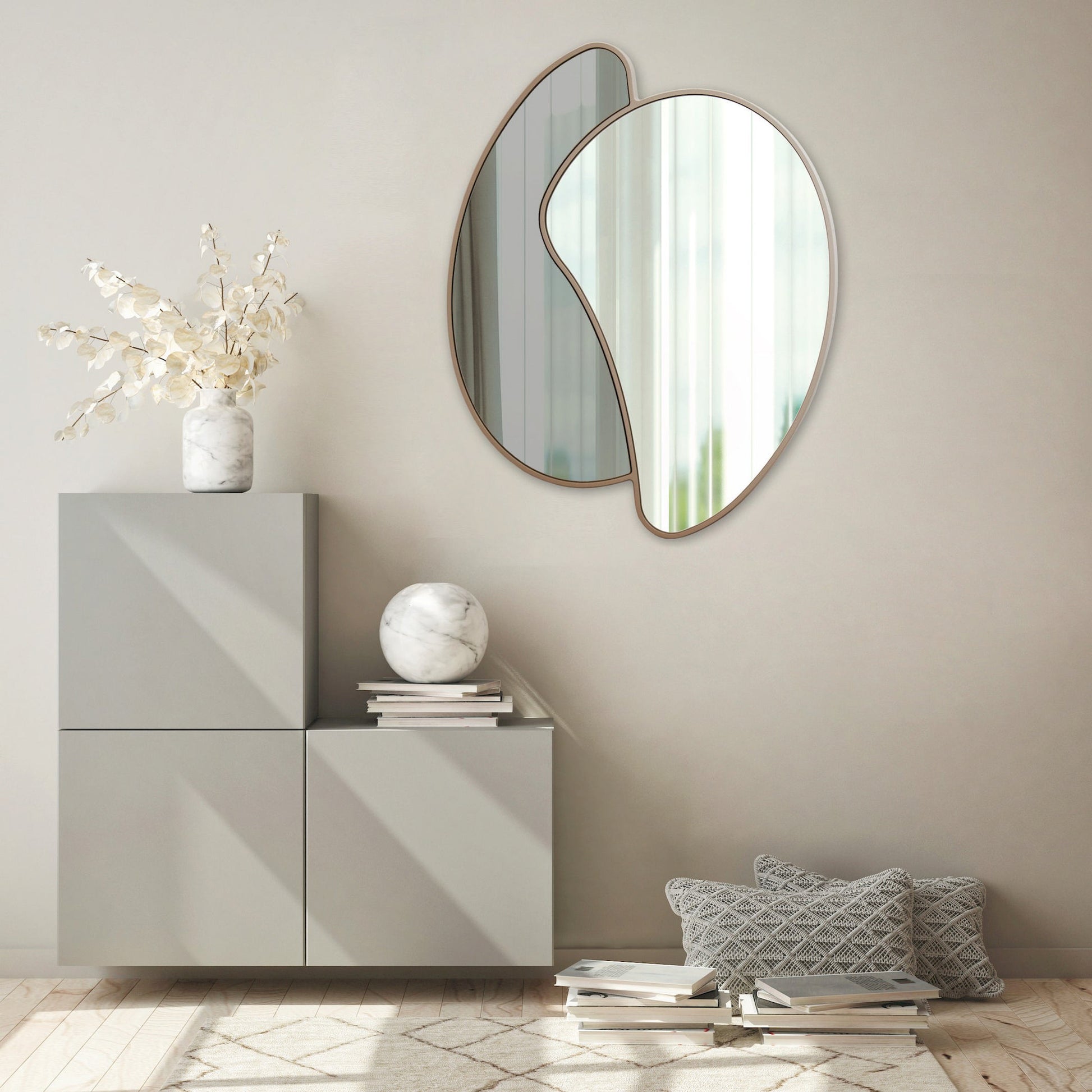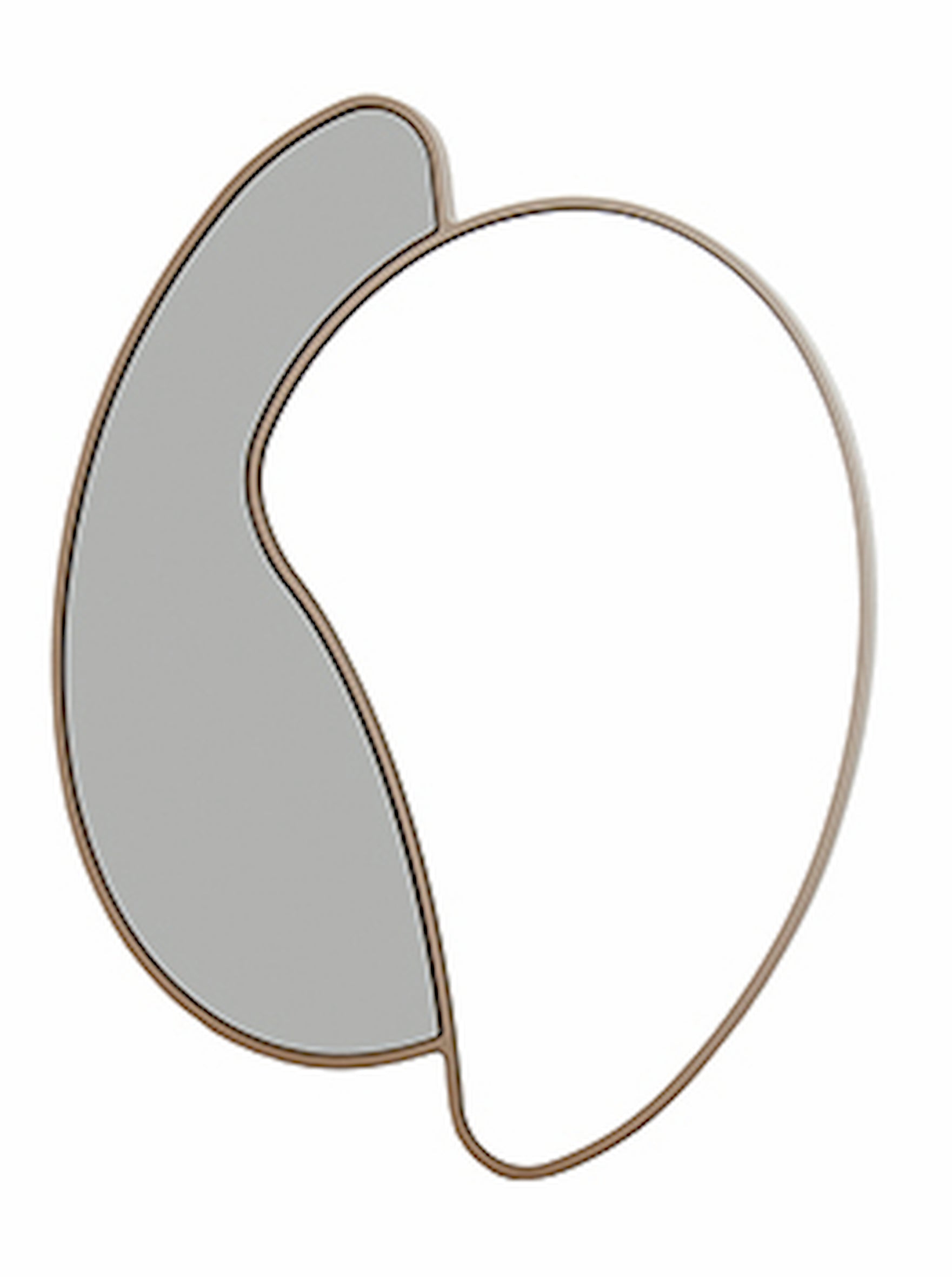 Specchiera con struttura sottile sagomata e laccata grigio tortora. Due specchi, di cui uno color fumè.