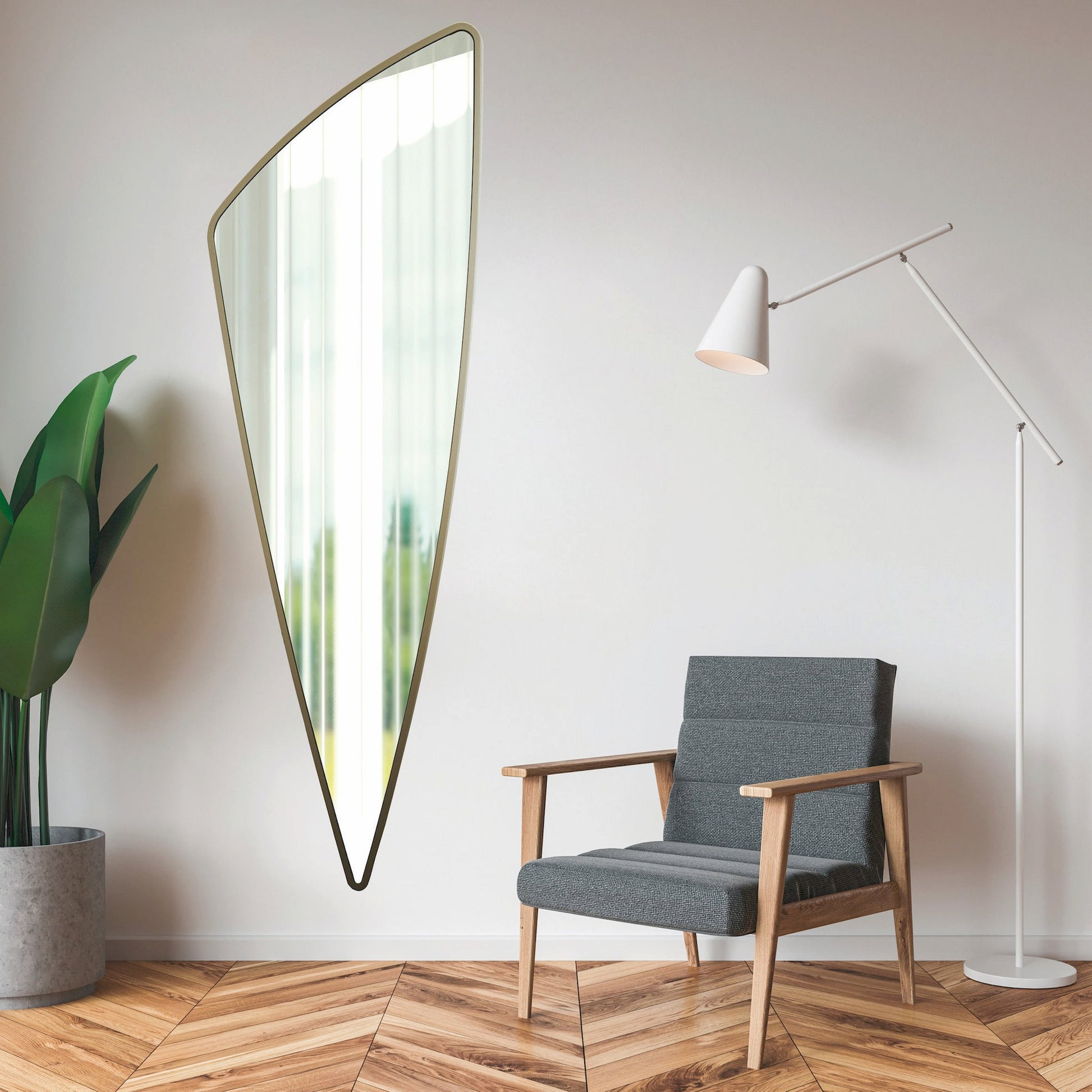 Specchiera con struttura sottile sagomata e laccata grigio tortora.
