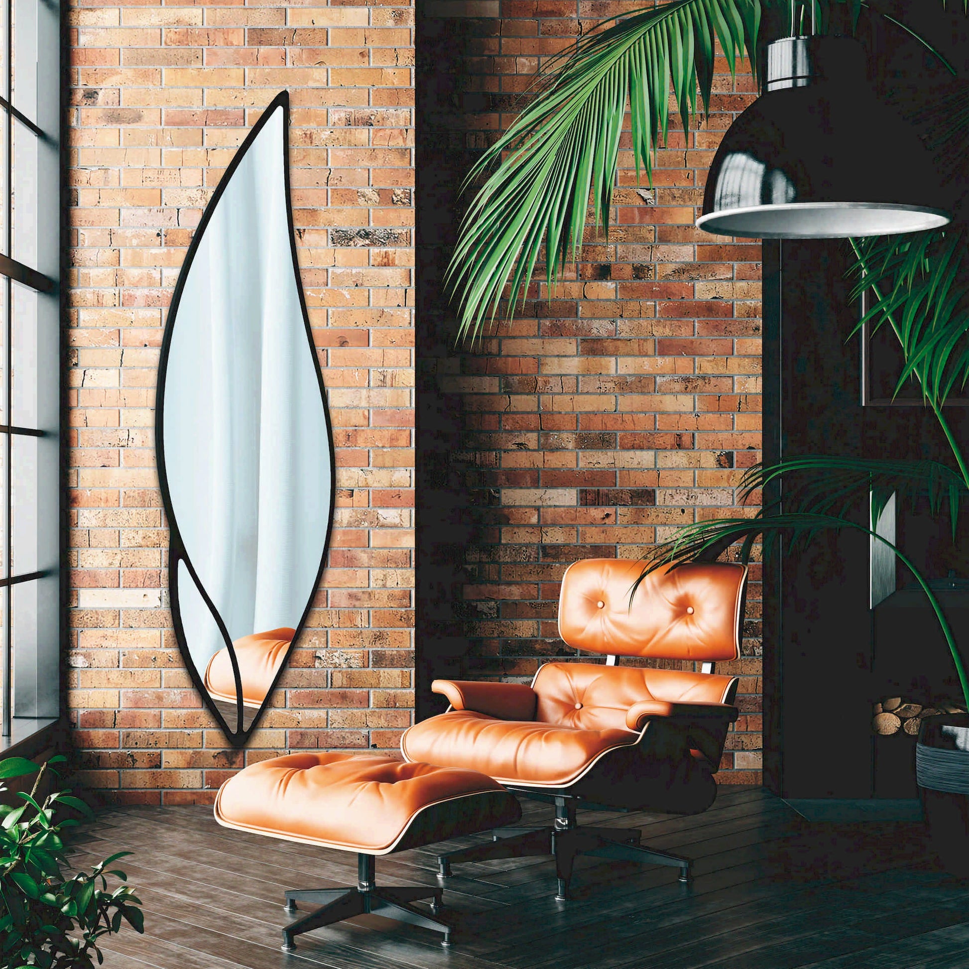 Specchiera con struttura sagomata a forma di foglia e laccata nero.
