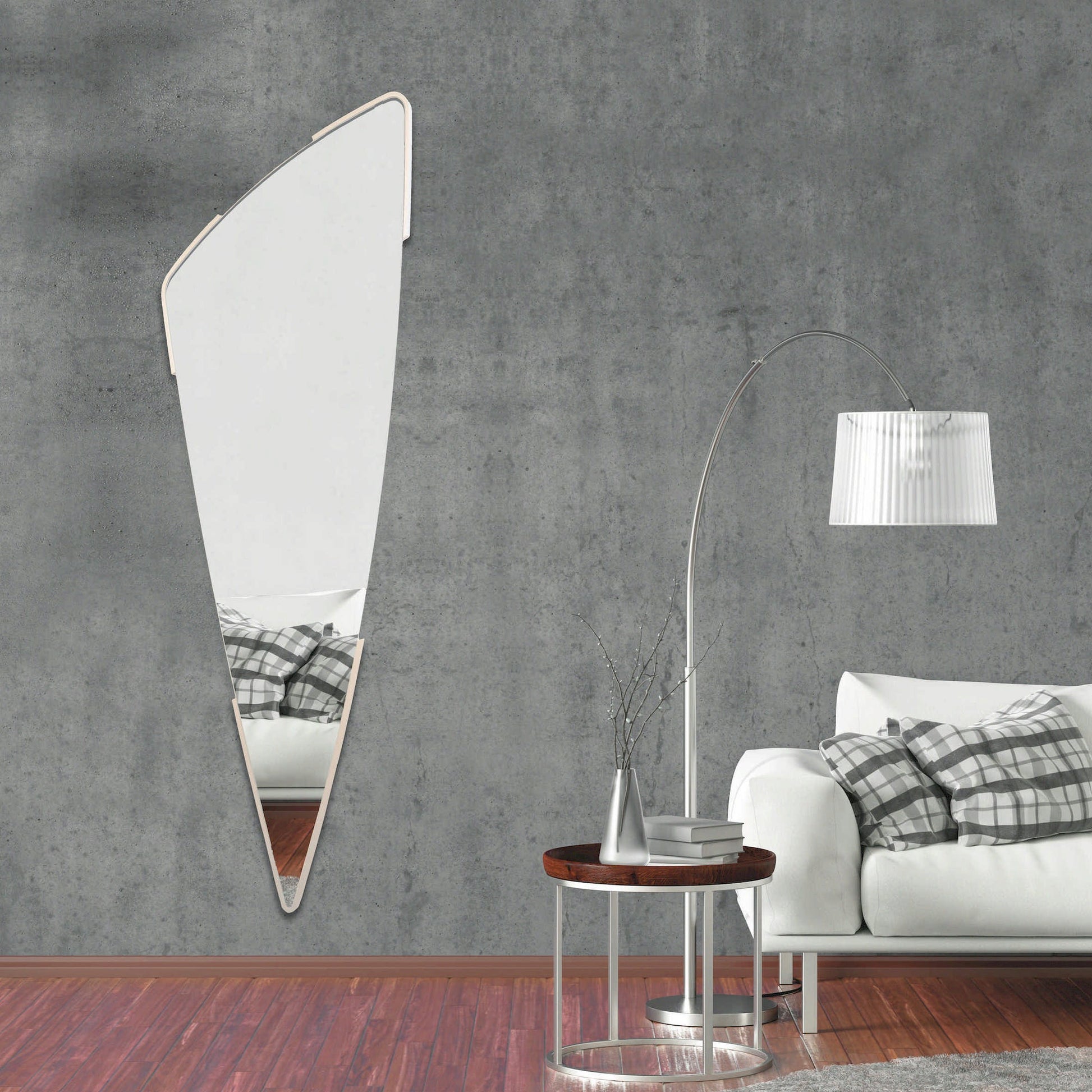 Specchiera con particolare struttura discontinua laccata bianco avorio. Specchio a sbalzo.