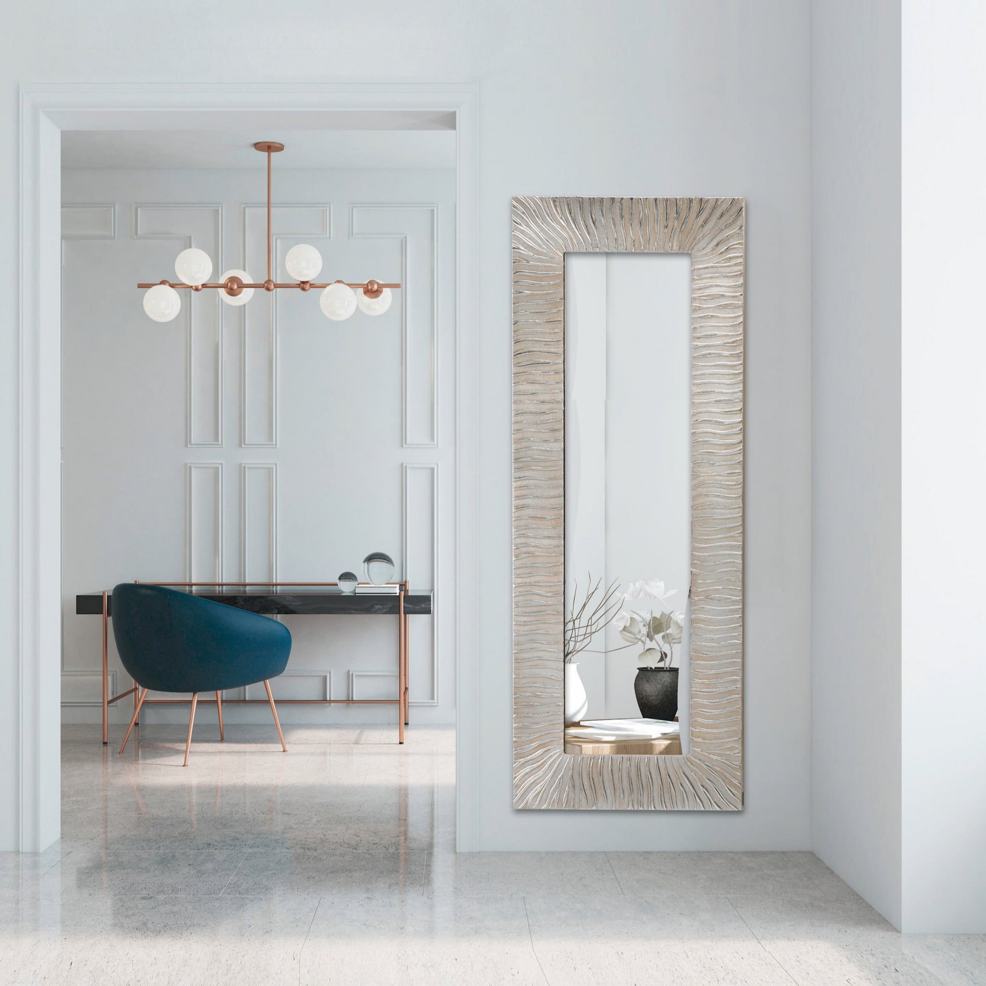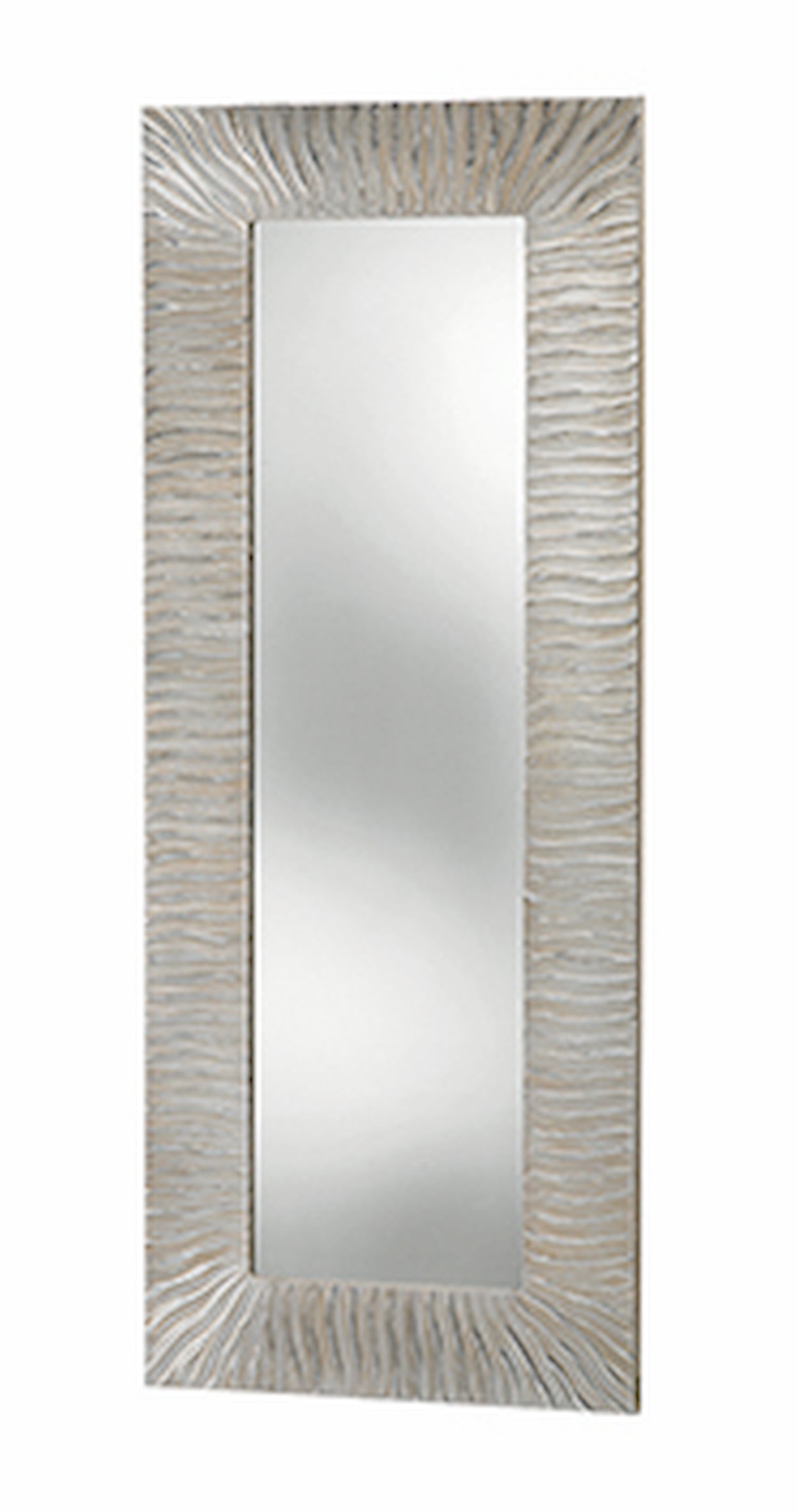 Specchiera decorata a mano con foglia argento su lavorazione materica in rilievo. Possibilità di affissione orizzontale o verticale.