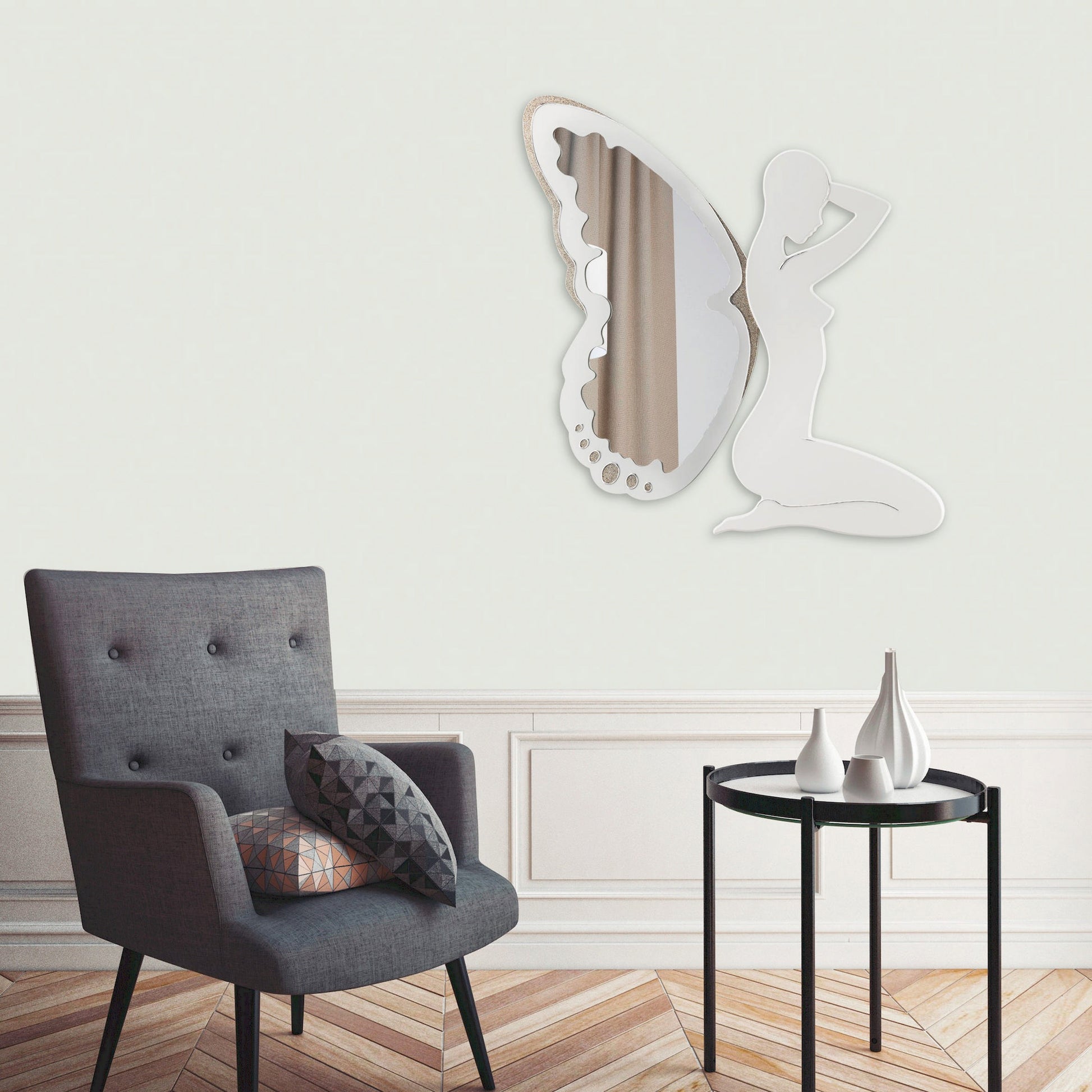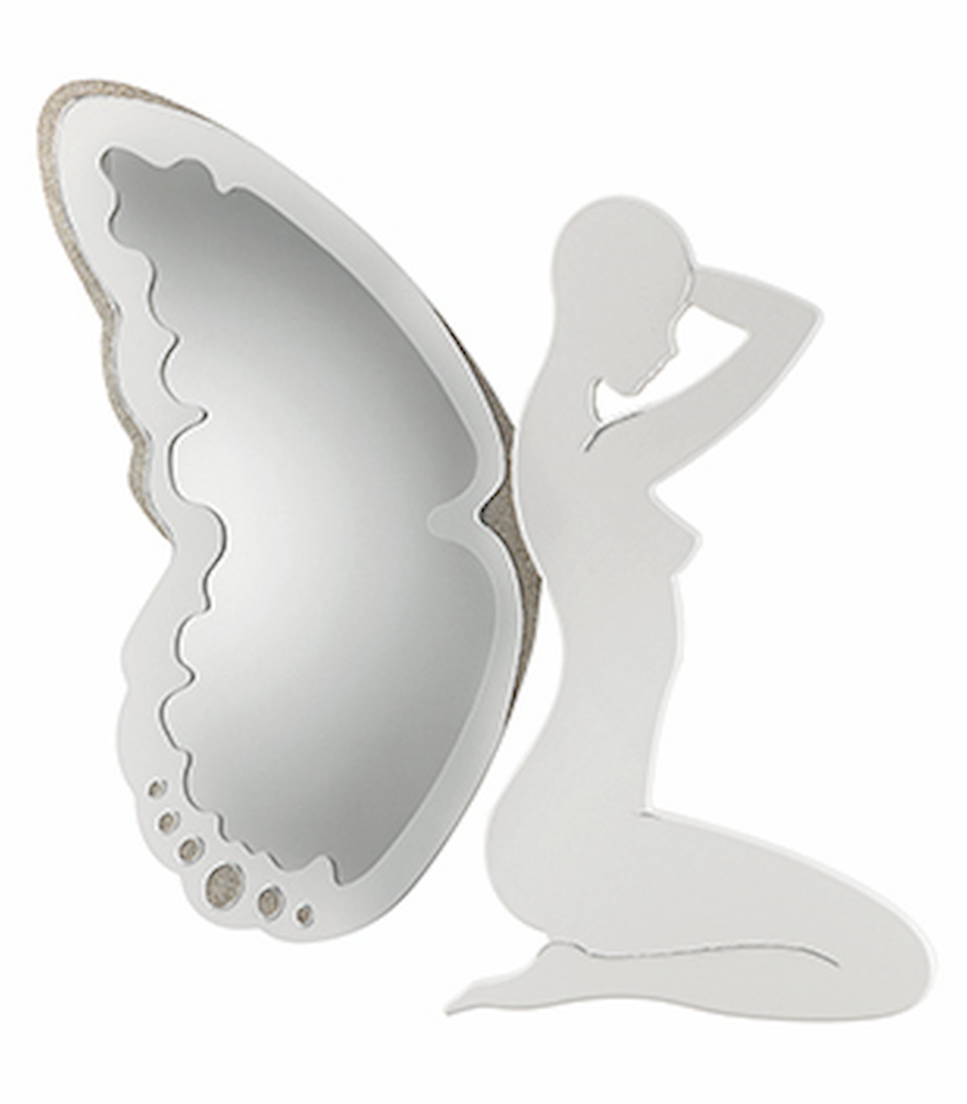 Specchiera con struttura sagomata, laccata bianco avorio e decorata a mano con glitter argentato e resina in rilievo.